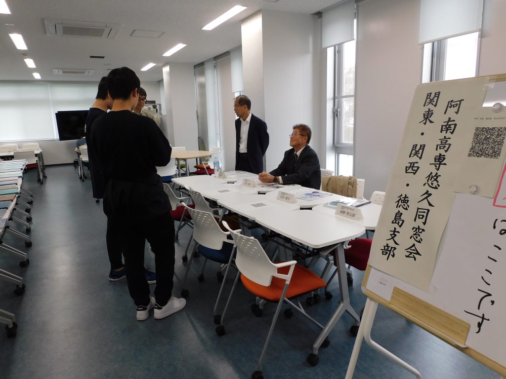 関東支部長の高橋さん(7M)、関西支部長の久米さん(7E)、徳島支部長の日出さん(7M)にもご参加いただき、ブースを訪問してくれた学生と情報交換するなど、現役学生と交流することができました。